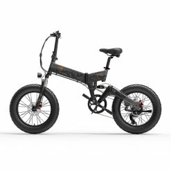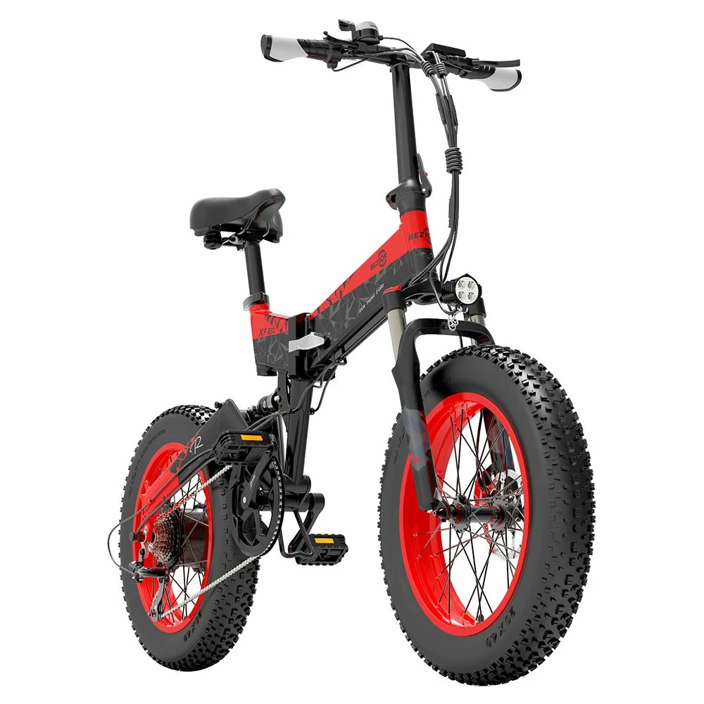 Bezior XF200 with 20×4” fat tires and front & rear suspension fork helps cyclists of venturing guts to conquer tough terrains: snow roads, asphalt roads, gravel roads, potholes, rugged mountain, etc.