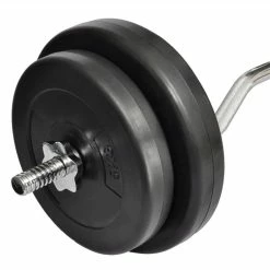 This curl bar with weights is great for home or personal training centers. This set consists of a curl bar of 5 kg and weight plates with a total weight of 25 kg. The curl bar set can be combined with our weight benches or/and our dumbbell sets for an even better training effect. The length of the curl bar is 120cm. You can easily make various combinations with the four plates, 2 x 7.5kg and 2 x 5kg. The star shaped screw collars ensure that the weights stay in place. The bar grip handles have a special structure for optimal grip during exercise. The weights have a noise-reducing plastic casing.