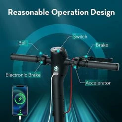 The electric scooter with 8.5-inch honeycomb shock-absorbing solid tires with high elasticity and wear resistance. Honeycomb solid tires are designed to make riding more convenient and less hassle. The honeycomb tire does not require inflation, repair, maintenance. So you don’t have to worry about punctured tires. And also, has a good anti-slip effect as well.