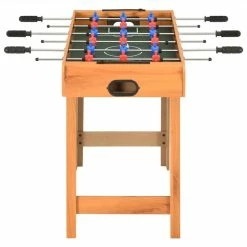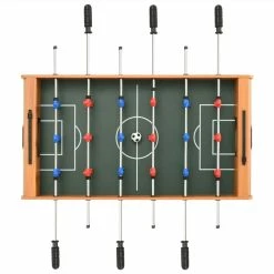 Host a professional football game in the comfort of your own house. Simple place our football table in your room and start playing! It will bring loads of fun to any setting, perfect for home game room, arcades, as well as other entertainment areas. This football table is suitable for one-on-one competition or group play. The table is crafted with sturdy MDF and chromed-finish steel rods to keep the table functioning for years to come. It features 6 rows to allow 3 rows per team, 9 red players and 9 blue players, as well as a cup holder on each end to stay hydrated when competition heats up. Equipped with flexible sliding player rods with non-slip handles, it offers you easy and comfortable grip. A complete football game table is delivered, including 2 goals, 2 balls, 2 scoreboards, 6 player rods and 18 players.